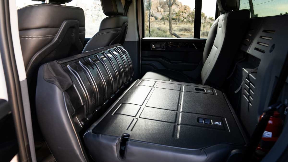 The cabin forward of the front seats is common between SUV and Quartermaster, though the truck’s rear seat back is notably more upright and it sure seems like passengers will tire quickly of riding along bolt upright. Legroom is iffy, too, especially if those up front take full advantage of the admittedly appreciated vast seat travel. If they do, hope you like sitting cross-legged. Furthermore, utilizing the fold-flat rear seatback for storage requires you to first flip forward the rear seat bottom which in turn pushes the driver seat far forward. Either way, not ideal.