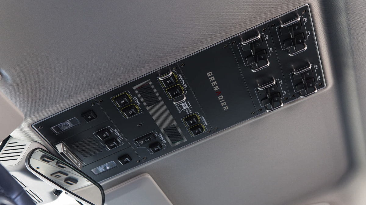 Better than nothing, I suppose, but it’s a curious bit of half-assed parts bin pilfering for a cabin that is otherwise shockingly bespoke. All the other buttons, toggles, stalks, etc. are Ineos pieces. The toggles in particular are super-cool, as it’s hard not to turn the car on (via a switchblade-style key, BTW) and immediately flick two or three unconnected auxiliary toggles in the ceiling just to feel like an astronaut. I may not be Buzz Aldrin, but I play one on the way to Lowe’s.
