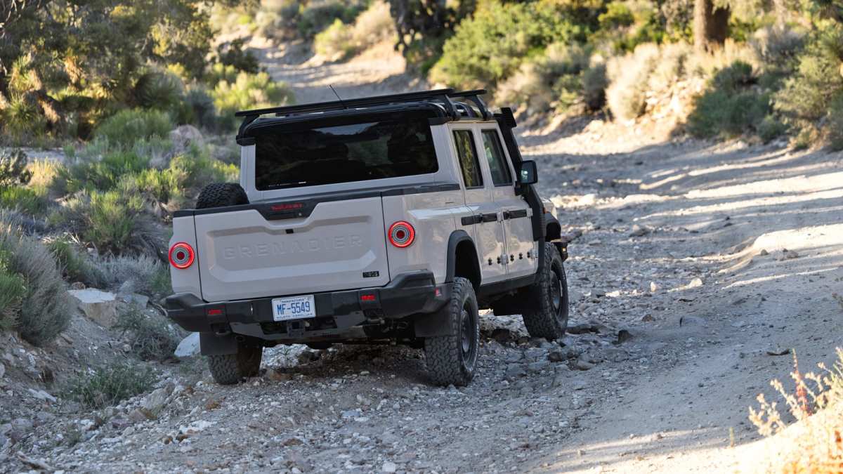 The American venue chosen to showcase the Quartermaster could certainly be mistaken for Australia, albeit with beige dirt instead of red, and Joshua trees in lieu of eucalyptus. We’re tackling dusty, rocky trails just outside Joshua Tree National Park, often at a decent clip that has the sturdy Grenadier proving resilient to the vicious vibrations caused by washboard surfaces and the solid thwacks of big heaves.